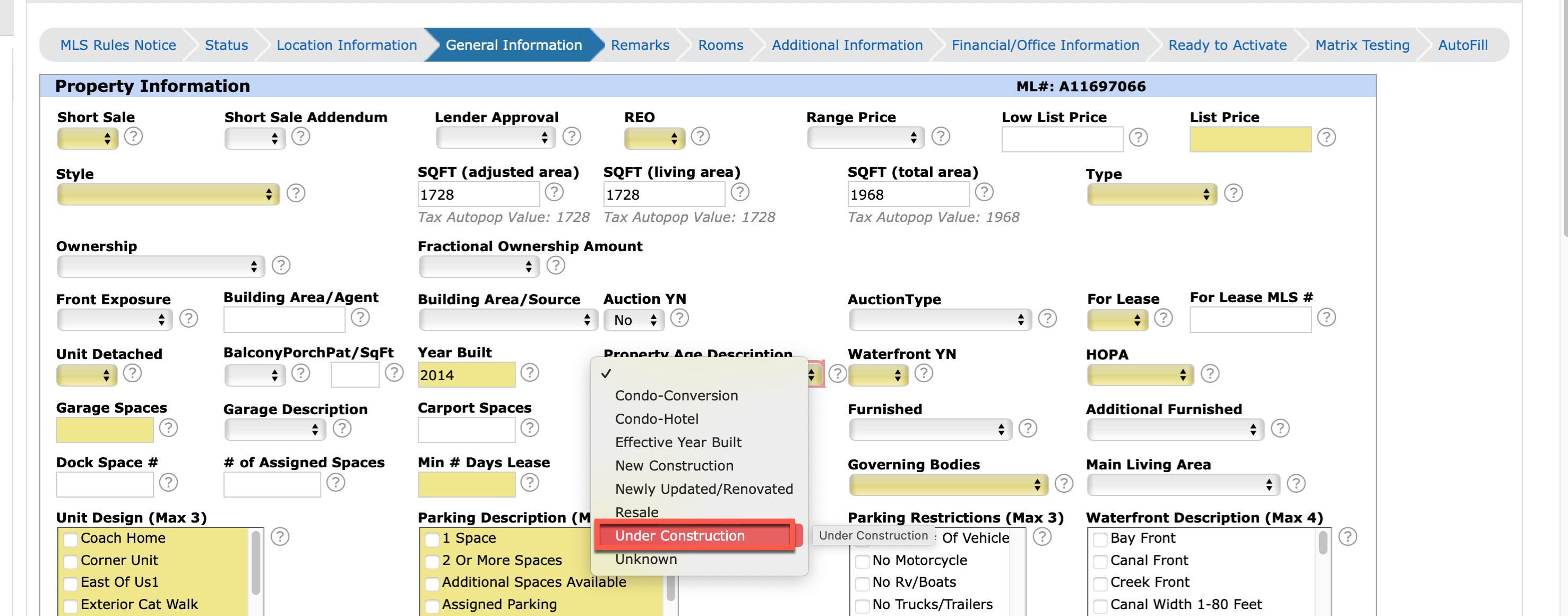 If you are listing a property and it's New Construction or Pre-Construction use the below steps.