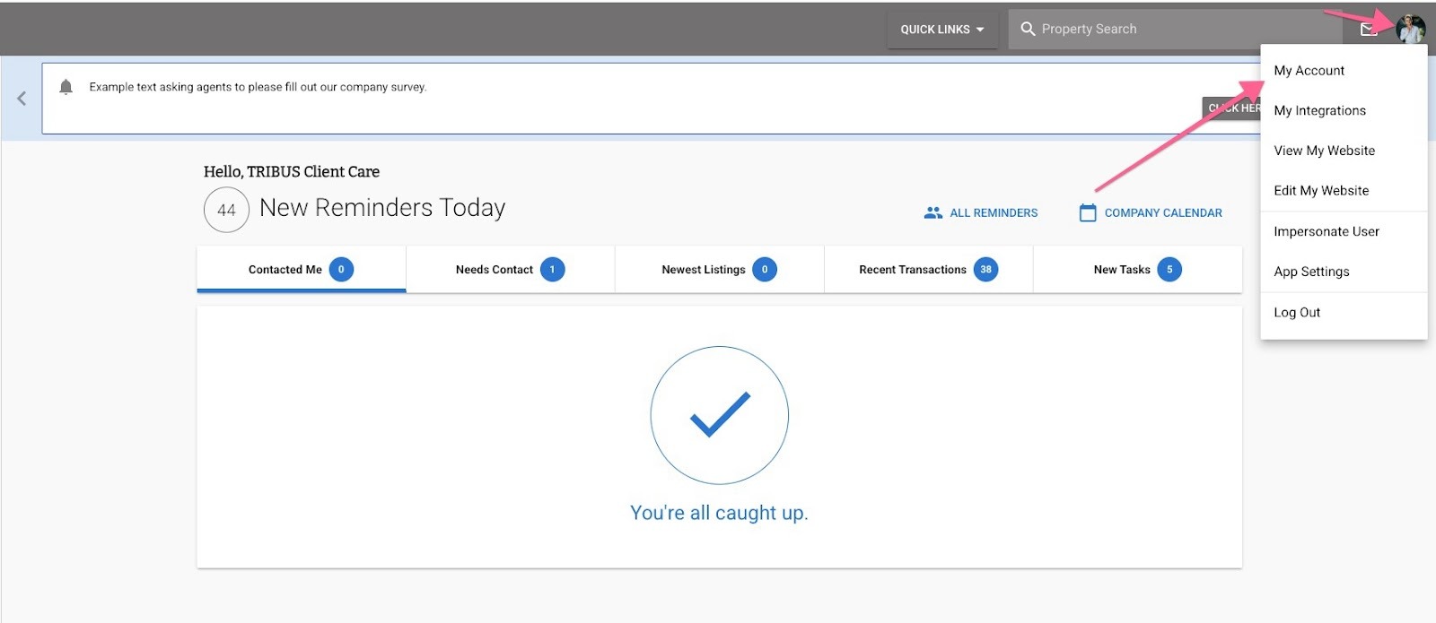 - Once logged into the dashboard, go to the top-right corner of the screen.
