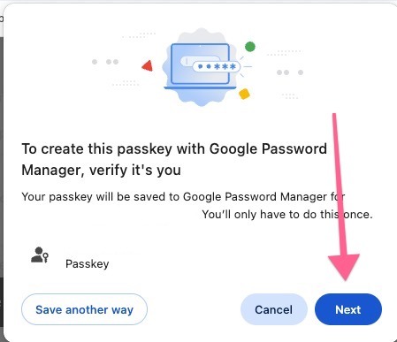 - ✅ Success! Your passkey is now created for this specific device. The next time you log in on this device, you will simply click "Sign in with Passkey."